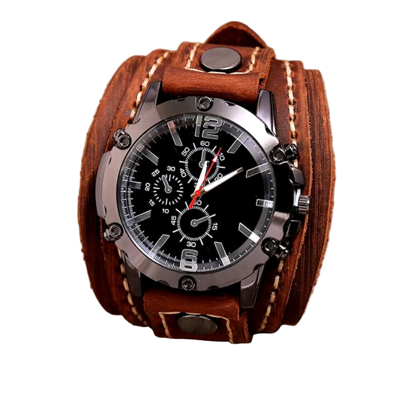 Montre-bracelet rétro en cuir pour homme – Montre-bracelet chronographe vintage à quartz