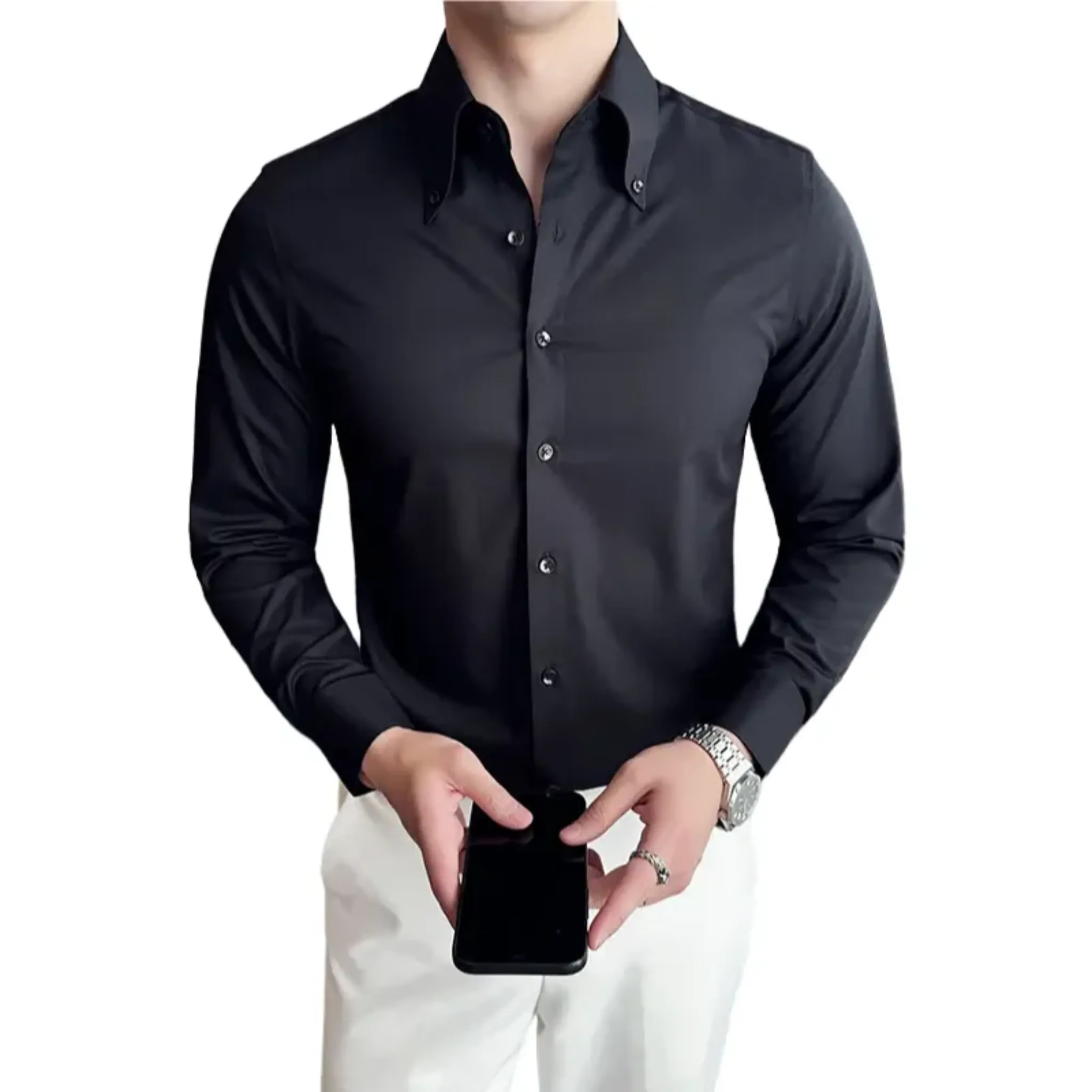Polyvalente et raffinée, cette chemise boutonnée a été pensée pour s’adapter aussi bien aux environnements professionnels qu’aux occasions plus décontractées. Portez-la rentrée pour un style soigné au bureau, ou détachée pour une allure plus décontractée en soirée. Confectionnée dans un tissu mêlant coton, bambou, lycra et polyester, elle offre élasticité, résistance aux plis et confort longue durée.