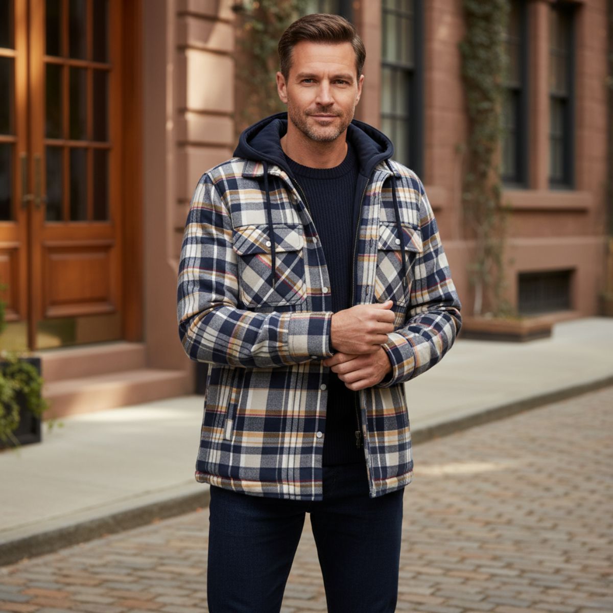 The Cinque Terre Veste d'hiver décontractée à carreaux avec doublure en polaire et capuche pour homme