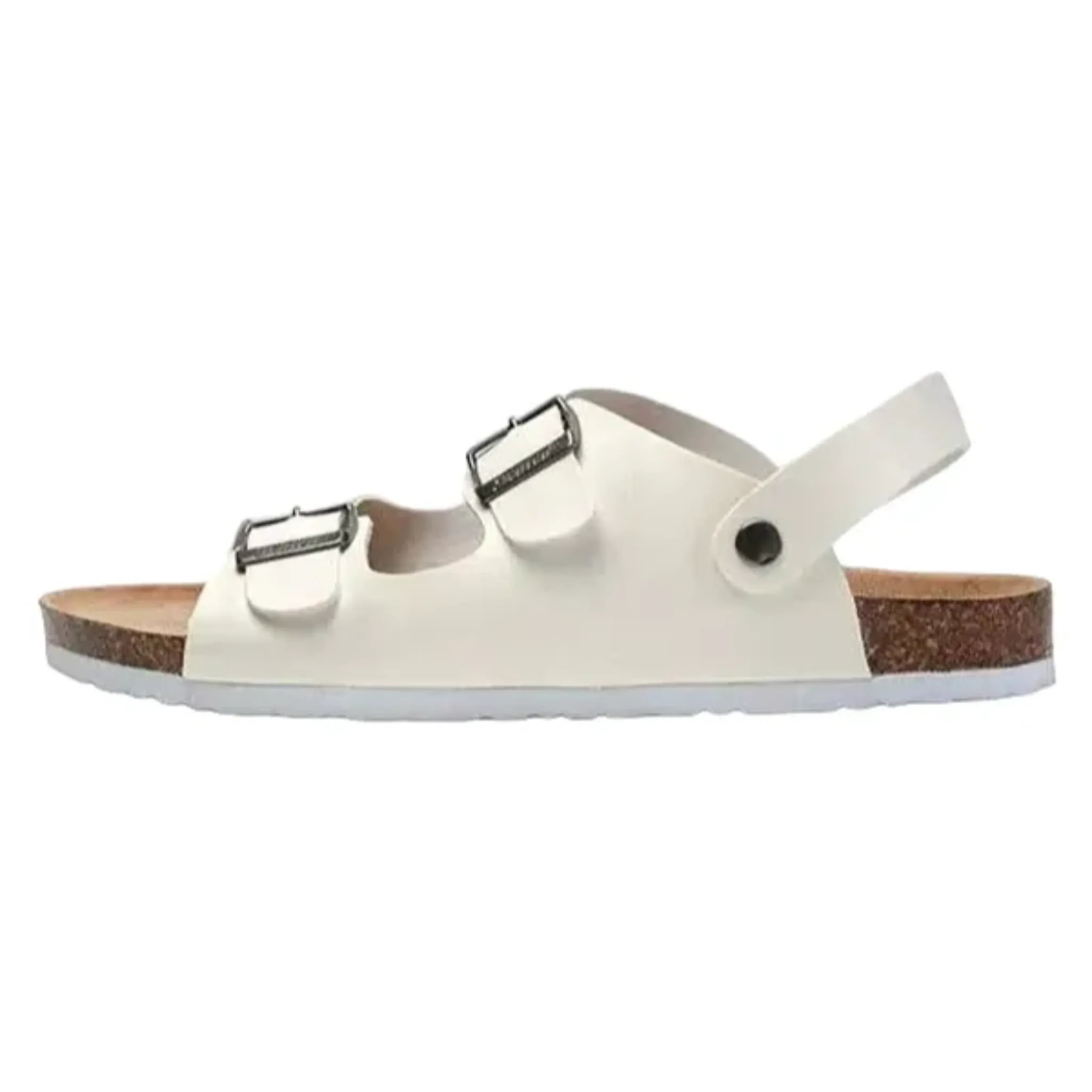 Ces sandales en cuir à bout ouvert sont conçues pour un été tout en confort. Leur tige souple et respirante assure un maintien agréable, tandis que la semelle en liège épouse la forme du pied.