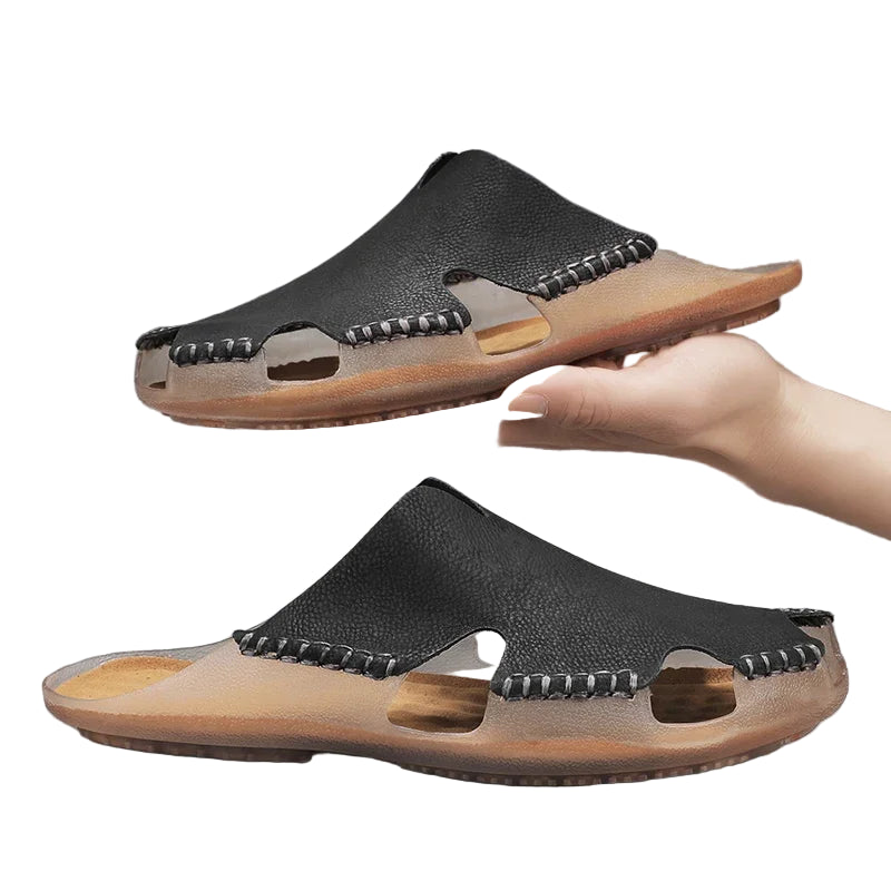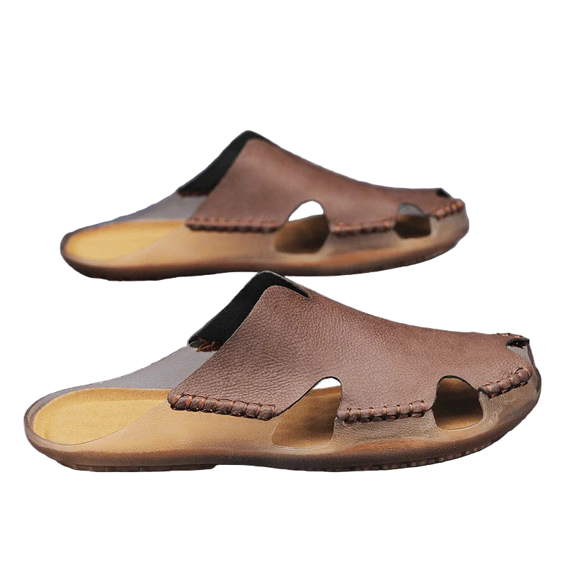 Sandales à enfiler en cuir pour homme – Chaussures décontractées à bout ouvert pour l'été