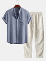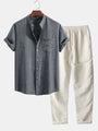 - Caractéristiques : Chemise boutonnée à manches courtes et pantalon léger à cordon ajustable
