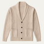 - Caractéristiques : Fermeture à boutons, col châle, et motif tricoté texturé raffiné