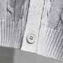 - Caractéristiques : Texture traditionnelle en tricot câble, fermeture à boutons, poignets et ourlet côtelés