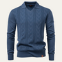 • Caractéristiques : Col polo à col V, motif tricoté texturé, et poignets & ourlet côtelés