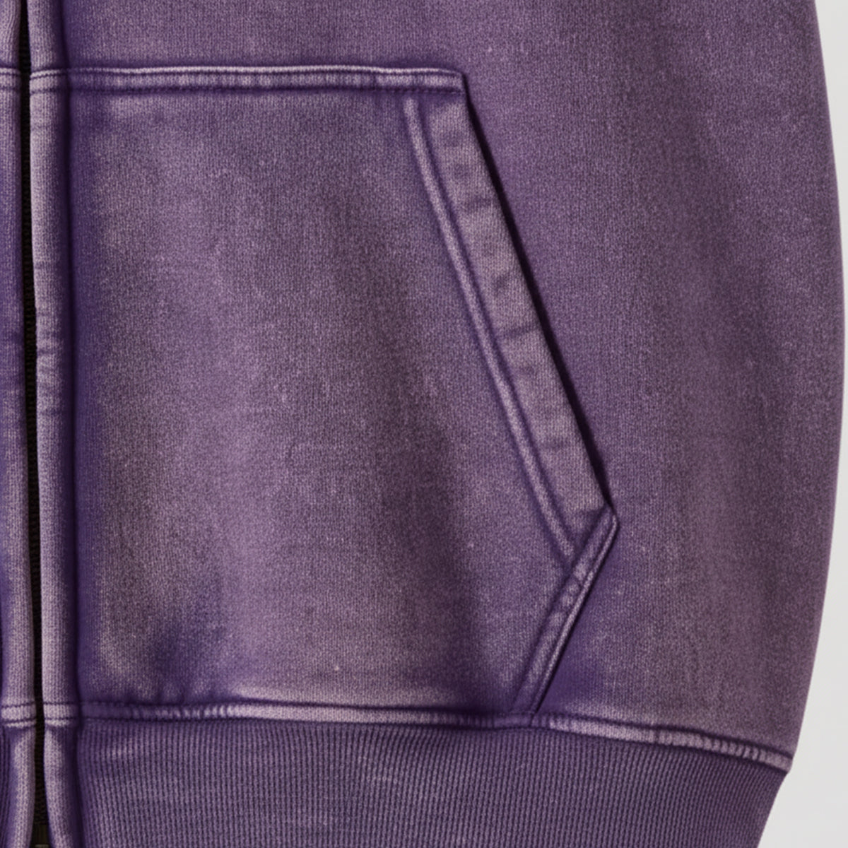 Sweat à capuche vintage délavé avec fermeture éclair – Style streetwear oversize pour homme