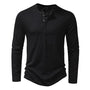 Chemise Henley à manches longues pour homme – Coupe slim décontractée avec boutons