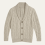 - Caractéristiques : Design en tricot de câbles géométriques, col châle et fermeture à boutons sur le devant
