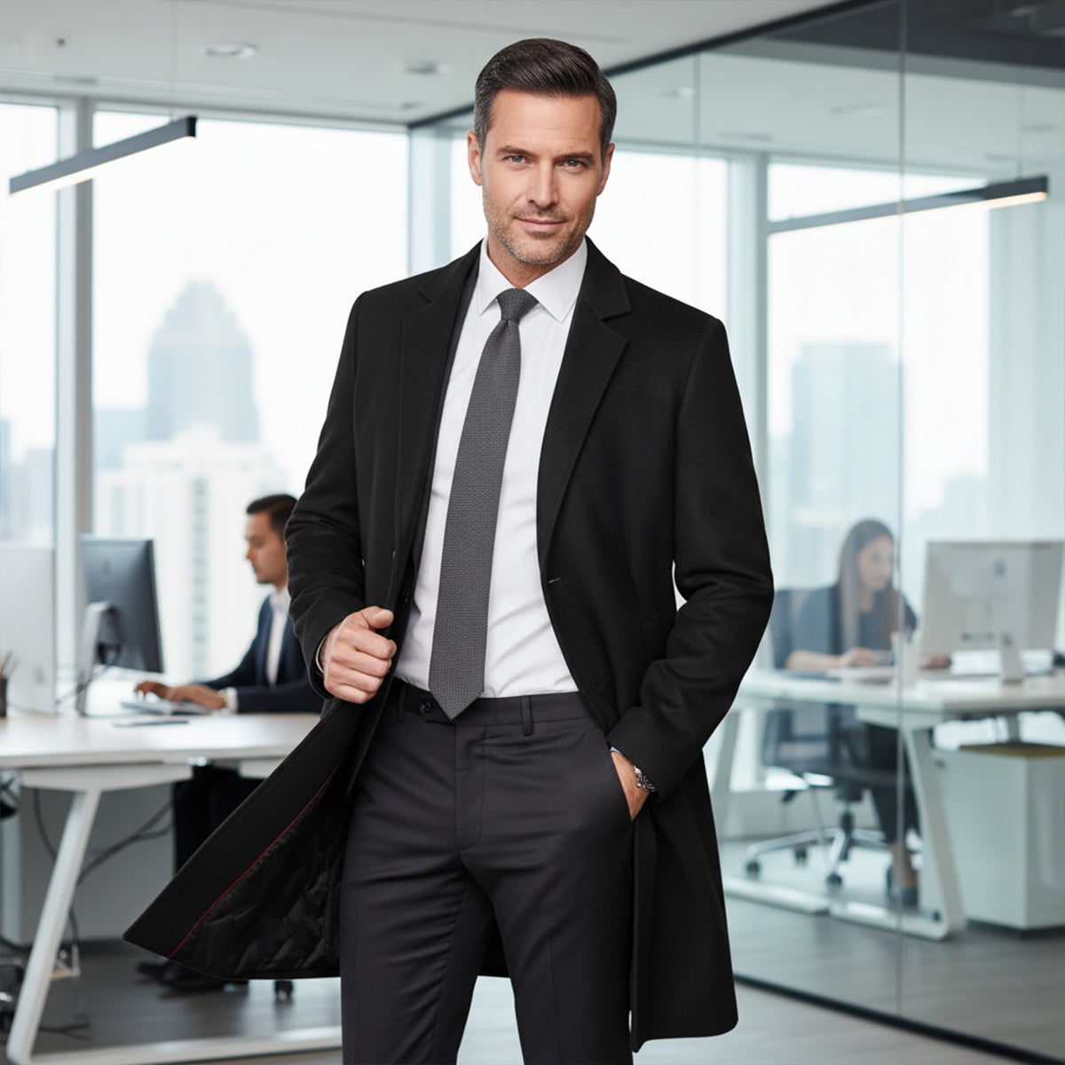 Élégance Intemporelle, Chaleur Confiante – La Veste d'Hiver en Laine Longue Sophistiquée pour Hommes de Canterbury