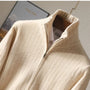 - Caractéristiques : Texture en tricot côtelé, fermeture éclair intégrale et col montant pour plus de chaleur
