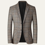 - Caractéristiques : Motif à carreaux classique, design à un bouton, et épaules structurées