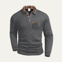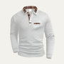 - Caractéristiques : Col polo à boutons avec contraste à carreaux, accent de poche poitrine, et manches longues pour une finition soignée