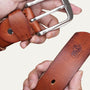 - Caractéristiques : Boucle en métal classique, couture renforcée et bords en cuir finis à la main