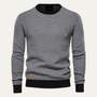 Restez élégant et confortable toute la saison avec le Pull Tricot d'Hiver pour Hommes Stratford. Fabriqué en tissu tricoté en coton de haute qualité, il allie texture moderne et design intemporel à col rond. La finition contrastée au niveau du col, des poignets et de l'ourlet ajoute une touche raffinée, offrant le parfait équilibre entre confort décontracté et style soigné. Que vous vous rendiez au bureau, sortiez dîner ou vous détendiez le week-end, ce pull vous garde au chaud, confiant et impeccablement habillé.